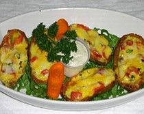 Your local sports bar appertizers list wouldn’t seem complete without potato skins, and neither will your party. Add this hearty finger food to your party platter and as the Giants and Pats fight over control of the pigskin, your guests will fight over the last potato skin.
