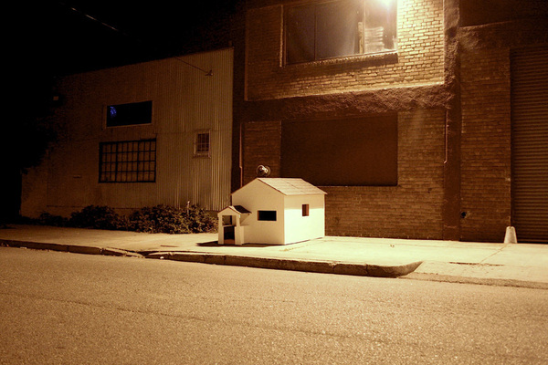 The House Project, interdisciplinary artist Eric Araujo’s sculptural exploration of the relationship between artists and the disenfranchised members of society, began in 2005 while the artist was living in San Francisco. Now Araujo offers an extension of this thoroughly explored idea: a public installation project titled Hole Up, in which the sculptor builds small-scale houses that are inserted in urban areas with a significant homeless population. The miniature homes can accommodate a person seeking shelter and are there for that very purpose.