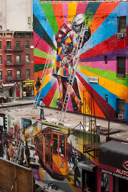 Kobra’s mural is quite possibly the artist’s attempt to give something back to NYC after all the city has done for him—graffiti and hip hop music have inspired him since he began practicing his craft as a young teenager. Kobra has an aptitude for capturing the character of the city through its glorious past, so that those who lived during those great times can remember them and those who did not experience them can foresee the potential of great things to come for the city they inhabit. The spectacular massive-scale artwork can be view at 25th and 10th avenue from the High Line Park.