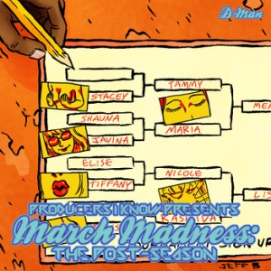 D-Man: Ha ha, the concept was all Dart Adams’ idea. He first told me about the idea when I opened up at Hustle Simmons’ (shoutout to the homie Hustle Simmons, by the way) Hustlepalooza Boston show February of last year and how he wanted to close the Cuffing Season instrumental series with an NCAA style tournament to bring the “cuffing season” to an end with an appropriate “post season” to crown a champ for bragging rights of baddest chick cuffed. What’s sad is that there was no victor crowned, because as men we all pretty much said, “who cares?” The tournament of beautiful women was victory enough; everybody won, ha ha.